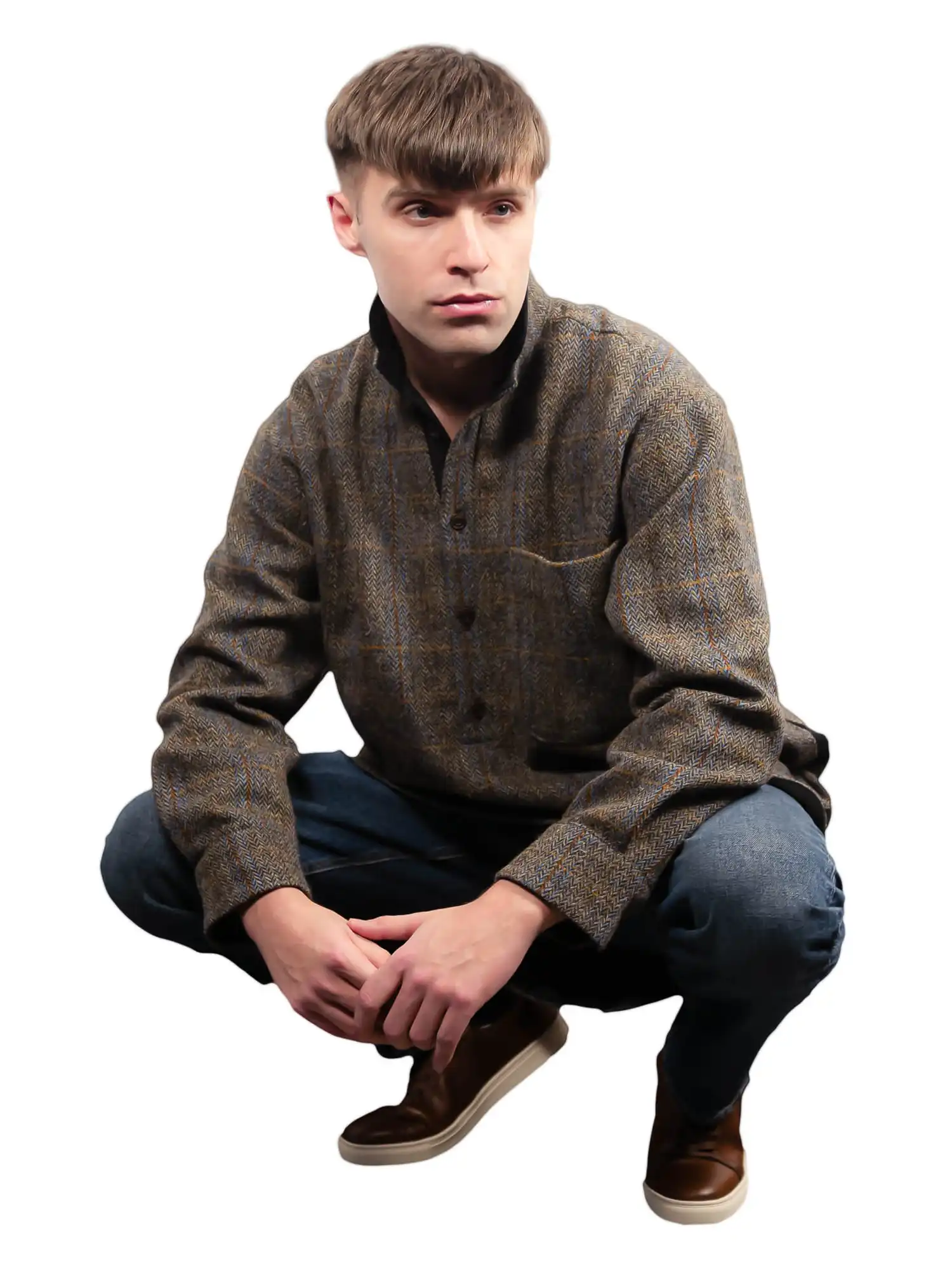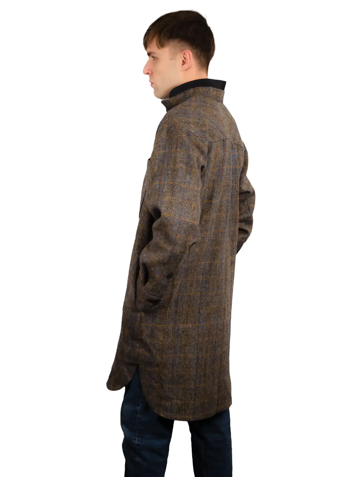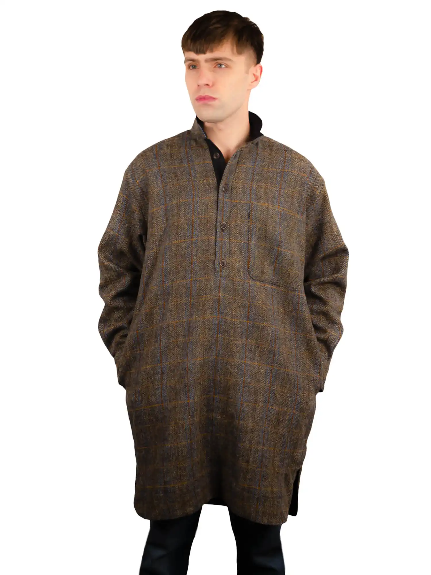 Traditional Harris tweed hand woven into the modesty movement. Scottish fine wool umbrellas the Highland Tweel Khurta. Protected band collar slinks into an overhung garment. Buttoned down to the chest, dropped shoulders, and deep pockets. This will make you feel comfort and strength. Soft wrist cuffs to test time, shielded breast pocket, this elegant garment is familiar yet rare. Single centred pleat at the back promenades the emblem. Choose the new heritage.