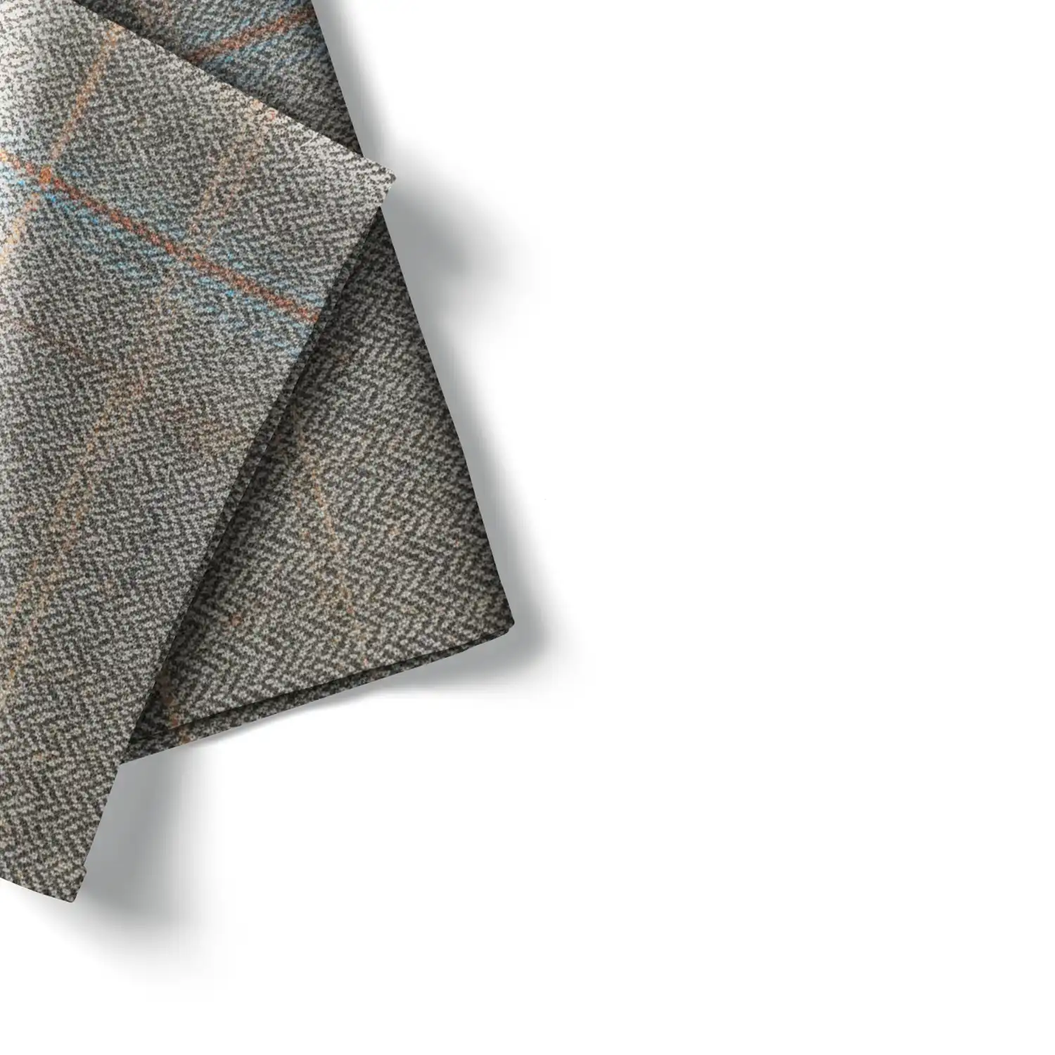 Authenticity is woven into the grain. Every Khurta utilizes genuine Harris Tweed, hand-processed by islanders in the Outer Hebrides. This is a textile defined by its density and multi-tonal complexity—a result of Scottish fine wool engineered to provide a natural thermal barrier.